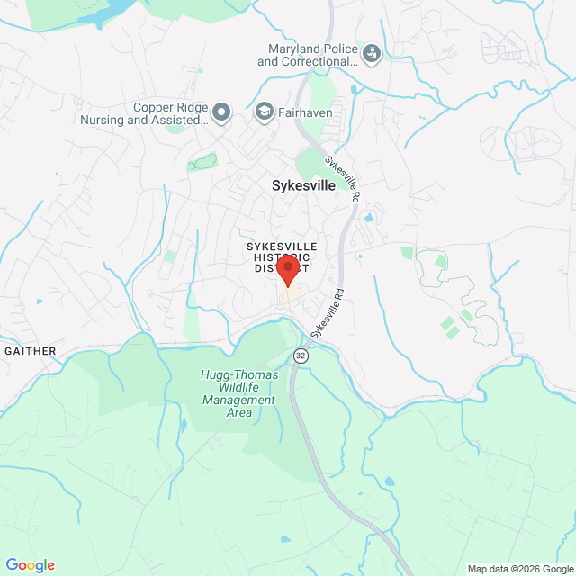 We are located on Historic Sykesville Main Street, directly across from Unwind and The Local Motive, near the intersection of Main Street and Church Street.